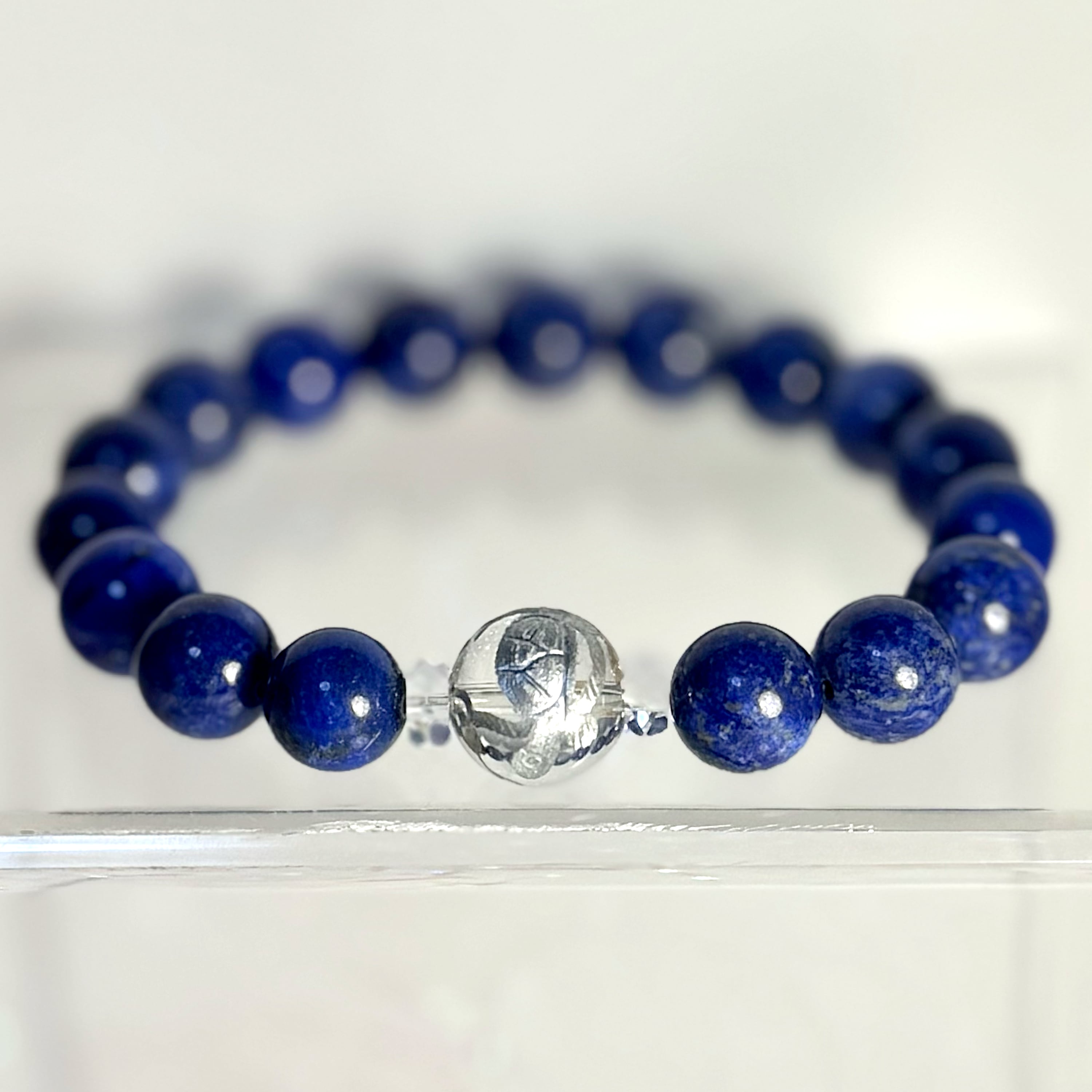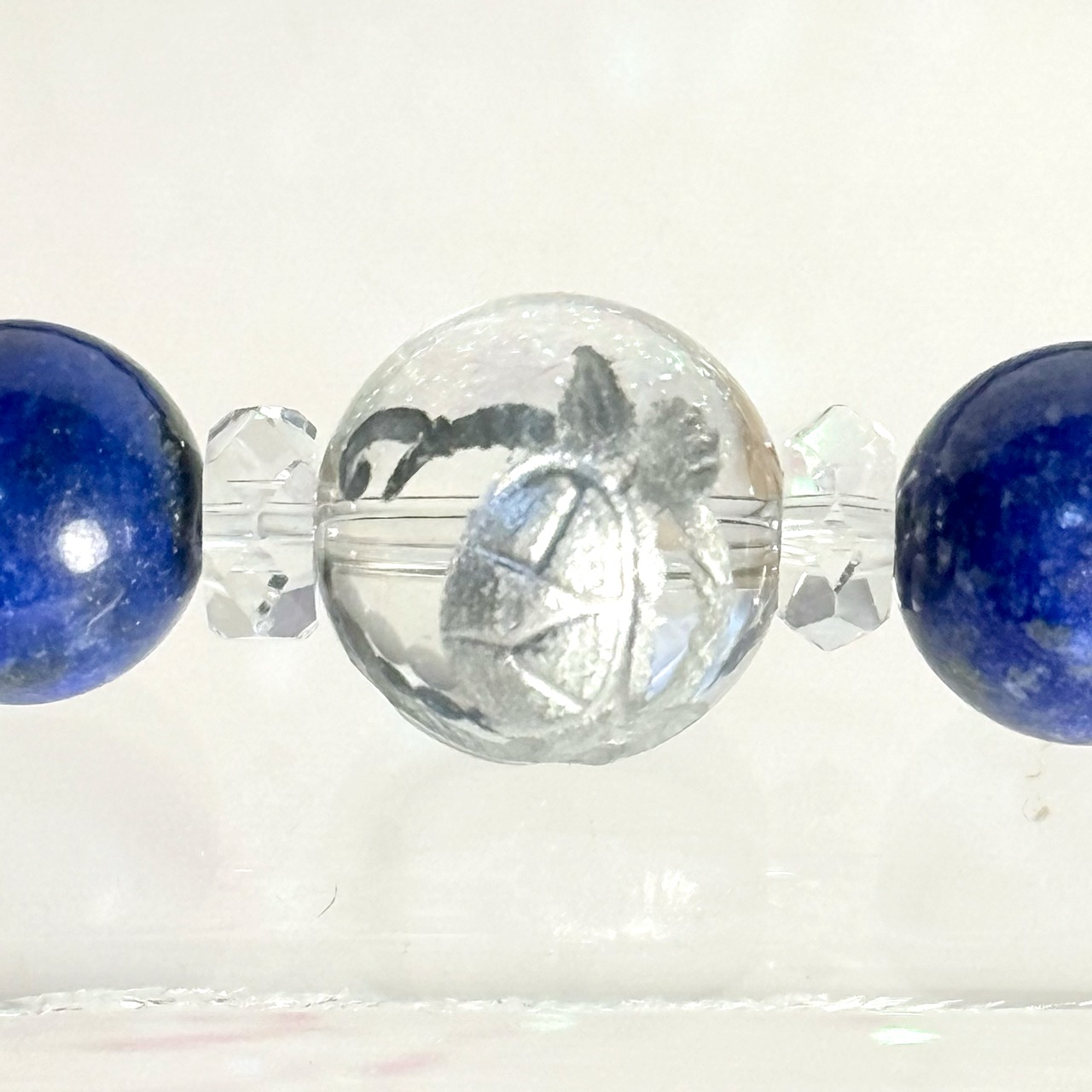 「CrossWorld クロスワールド」は、ラピスラズリ、ボタンカット水晶、玄武=銀彫水晶、そしてホワイトシェル羽を組み合わせた特別なアイテムです。ラピスラズリは直感力を高め、ボタンカット水晶が持つ明るいエネルギーは持つ人に自信を与えます。玄武=銀彫水晶は運気をサポートし、ホワイトシェル羽が持つ柔らかな美しさは心を穏やかに保ってくれます。